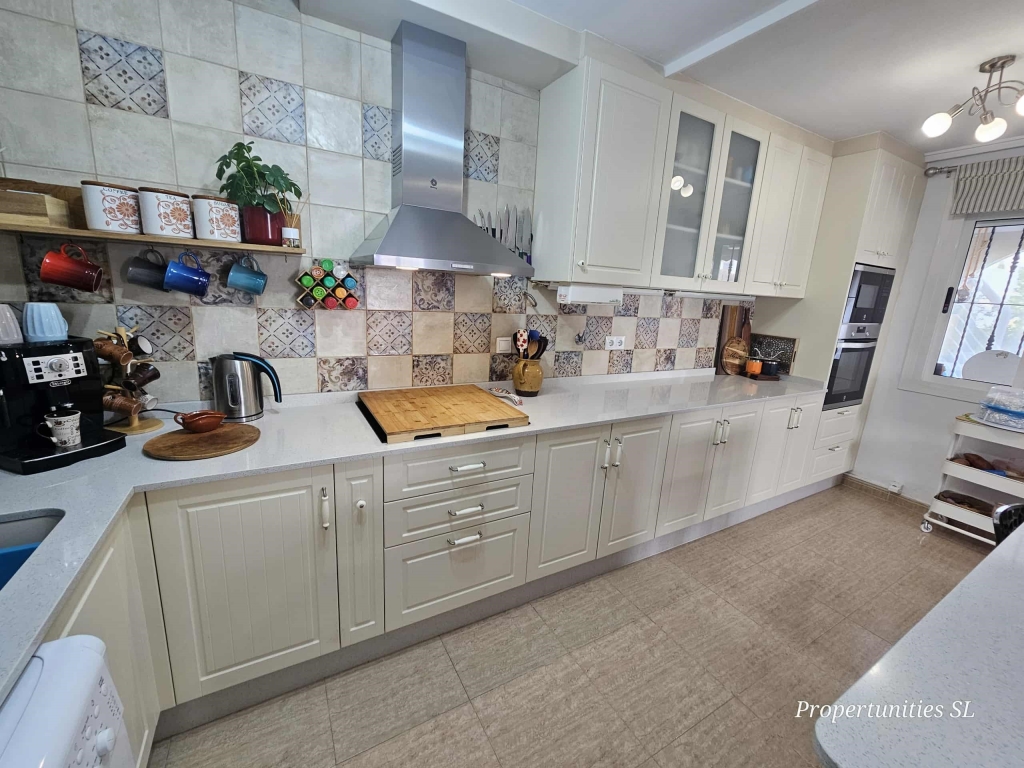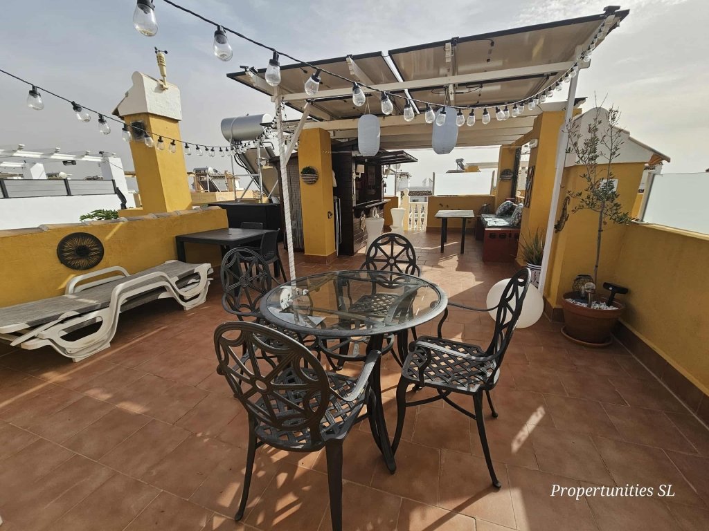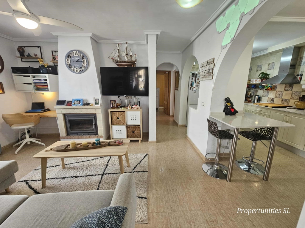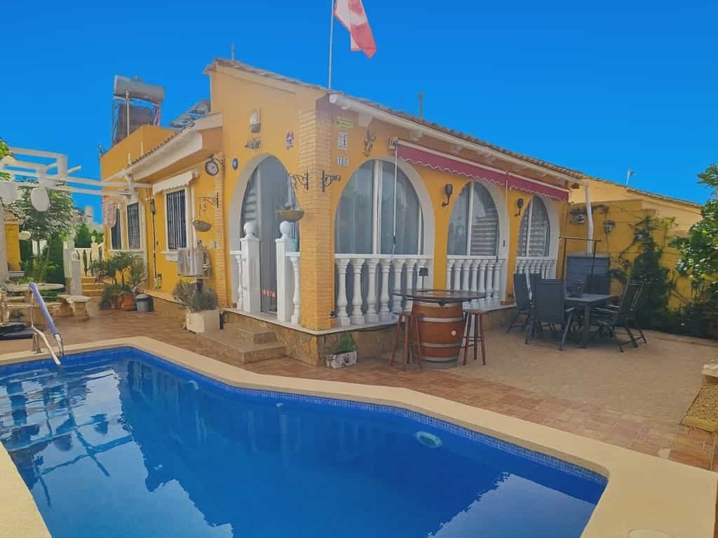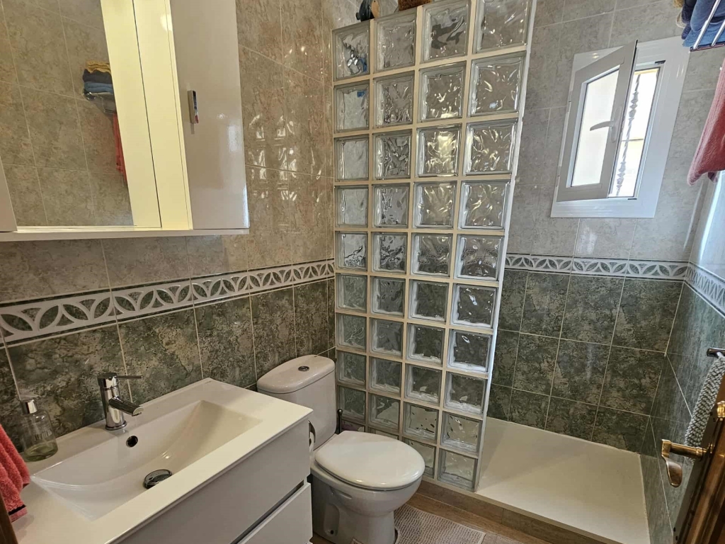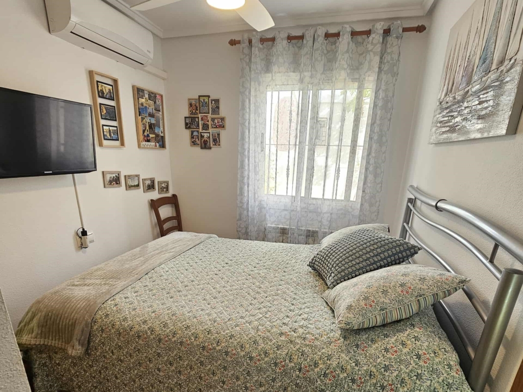 160 Modern Detached Villa with Solar Power, Private Pool & Bar Sierra Golf, Jerónimo y Avileses, Murcia – 30592 Discover contemporary, energy-efficient living in this beautifully presented 2-bedroom, 2-bathroom detached villa located in the sought-after Urbanización Sierra Golf. Fully furnished and move-in ready, this property offers exceptional comfort, sustainability, and style. This well-maintained villa features a 10 kWh solar system with 12 panels and battery storage, capable of powering an electric vehicle, significantly reducing energy costs. A newly installed solar hot water system with a backup electric boiler ensures efficient and reliable hot water throughout the year. Inside, the home boasts a modern open-plan kitchen with brand-new appliances, fully air-conditioned rooms with WiFi-enabled heat pumps, and a charming covered entrance porch enclosed with glass—ideal for year-round dining and relaxation. Both bathrooms have been fully renovated with modern walk-in showers, heating, and electric fans. The expansive solarium provides multiple seating areas and a fully enclosed wood-framed bar, perfect for hosting family and friends. The bedrooms, living room, and porch are equipped with DC drive ceiling fans, and the living room features a cozy log-burning fireplace for added warmth and ambiance. Outside, the private garden offers high privacy walls, fruit trees, low-maintenance landscaping, and a private swimming pool. Several side awnings and stand-up umbrellas provide flexible shading options. Outdoor cooking enthusiasts will enjoy both the gas BBQ and traditional Spanish-style brick BBQ. Two brick-built storage sheds with power supply—one fitted with a fridge and independent freezer—provide excellent additional storage. Security and connectivity are top-tier with multiple solar-powered WiFi security cameras, Starlink satellite internet, and windows fitted with shutters, grills, and fly screens.